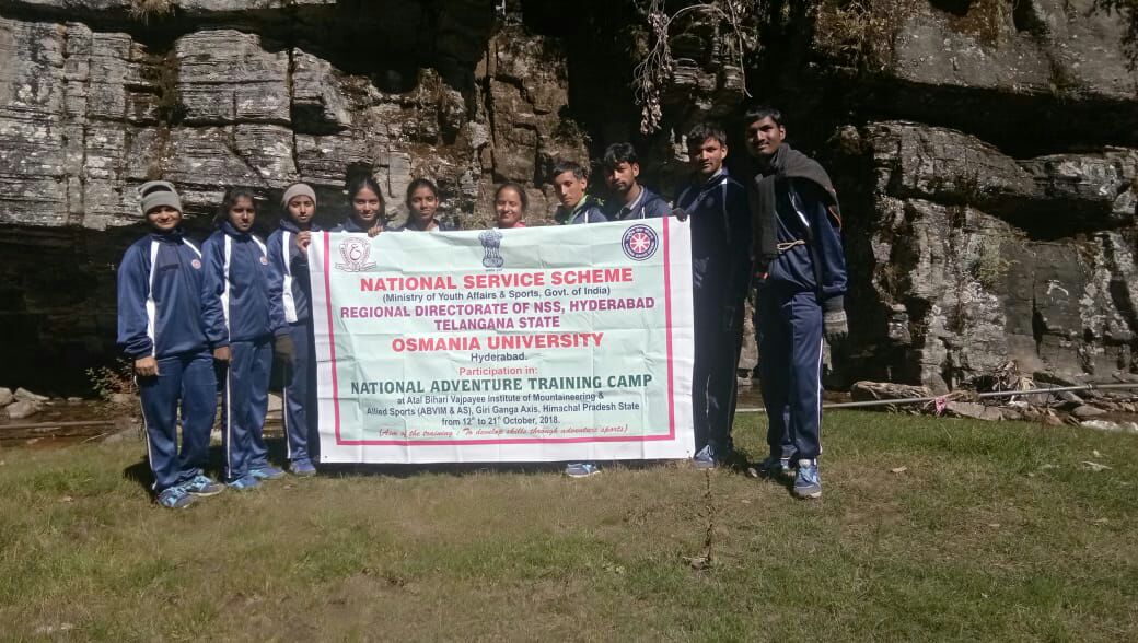 We are glad to hear about the NSS adventure training program which was held in month of oct 12/10/2018 to 21/10/2018 at Himachal Pradesh Kadapathar at giriganga axis nearly 70 students attendant the auditions from OU .We are happy to hear that our student T. Nagarjuna got selected for NAC.
